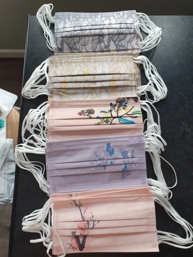 Маска для лица для взрослых, трехслойная, дышащая, с цветочным прин...