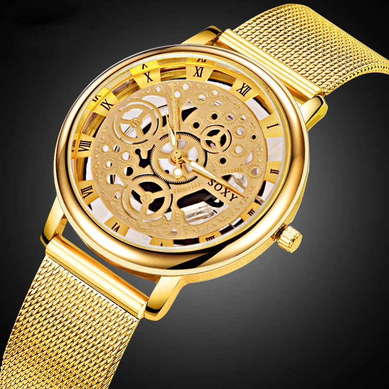 Мужские кварцевые часы SOXY, Делюкс, с полым ремешком из нержавеюще...