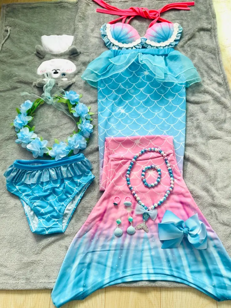 Este bañador está bien hecho. Cuando lo recibí, me sorprendió descubrir que su calidad era muy buena. El material es suave al tacto y el diseño es genial. A mi hija le gustan mucho los accesorios y piensa que son muy bonitos y lindos. Tan pronto como mi hija llegó a casa, no podía esperar para abrir el paquete y probárselo. El disfraz de sirena le queda muy bien. Viste muy bien, realmente como una sirena. Caminaba feliz por la casa con un traje de sirena y no quería quitárselo después de usarlo por un día.