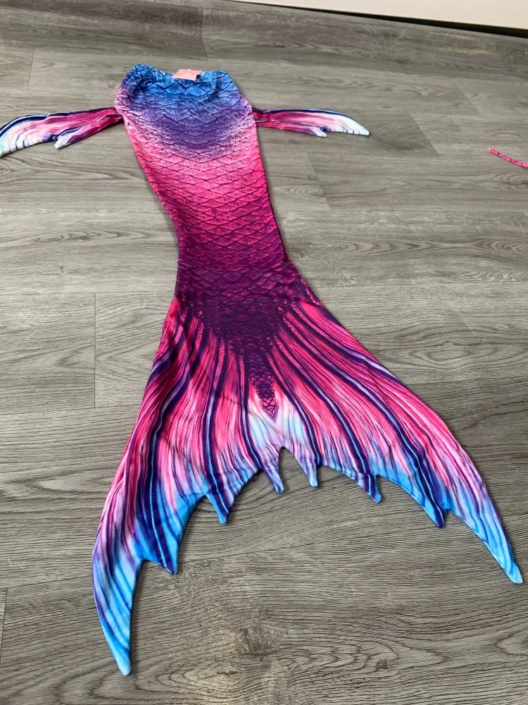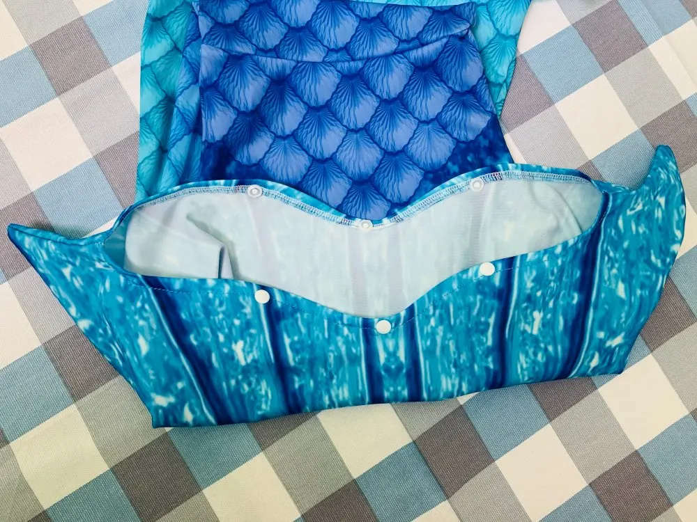 My granddaughters love these. The material is super nice and the zipper doesn’t get stuck. Looks great but the bathing suit fits great. We had the mono fin from her toddler set that works and fits great within the tail.