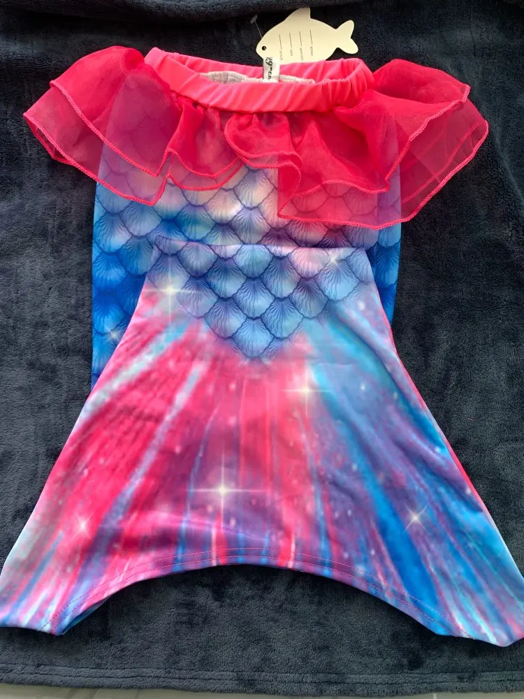 Моя маленькая племянница очень рада и любит этот костюм русалки. Когда она была очень молодой, она выглядела в мультфильме русалки. Она всегда желала быть принцессой Русалочки, и теперь она наконец-то это понять. Спасибо!