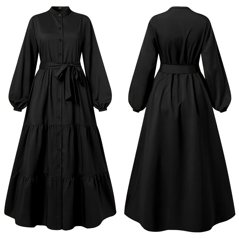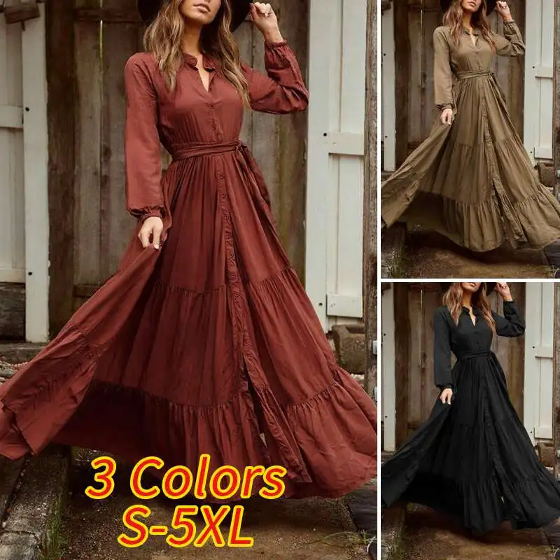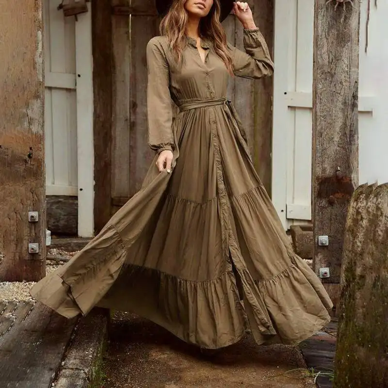 Платье-макси весеннее с длинным рукавом-фонариком и пуговицами