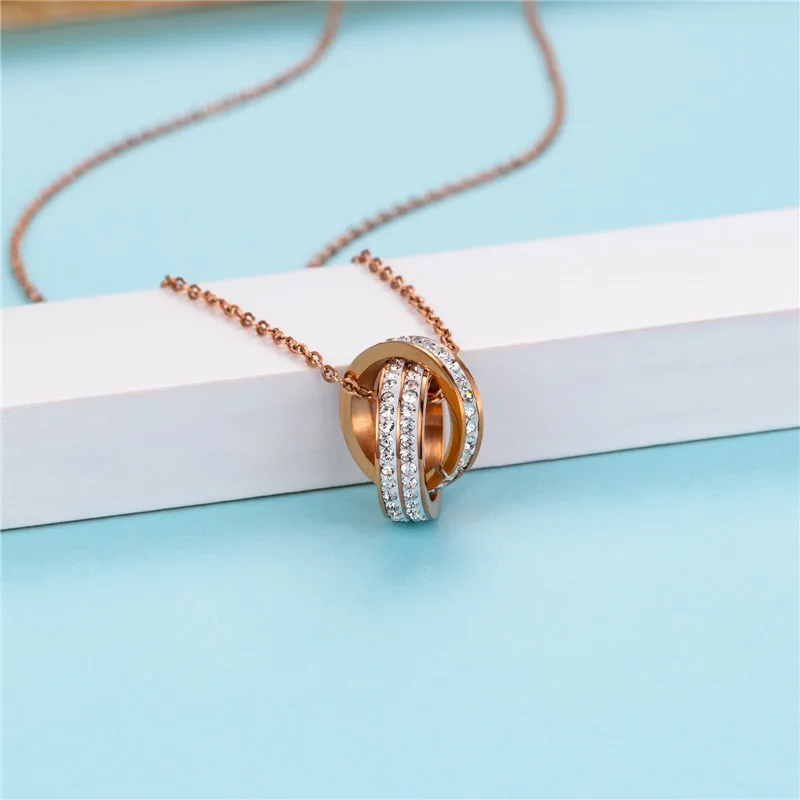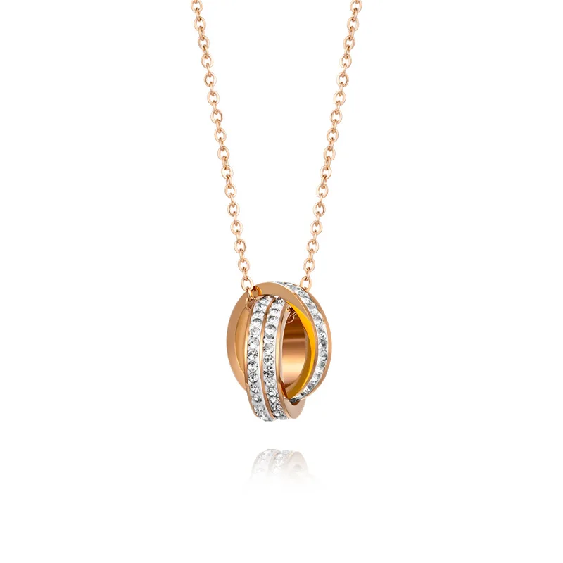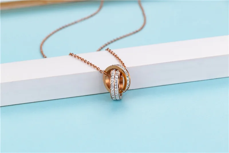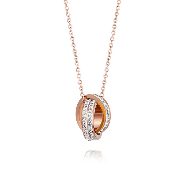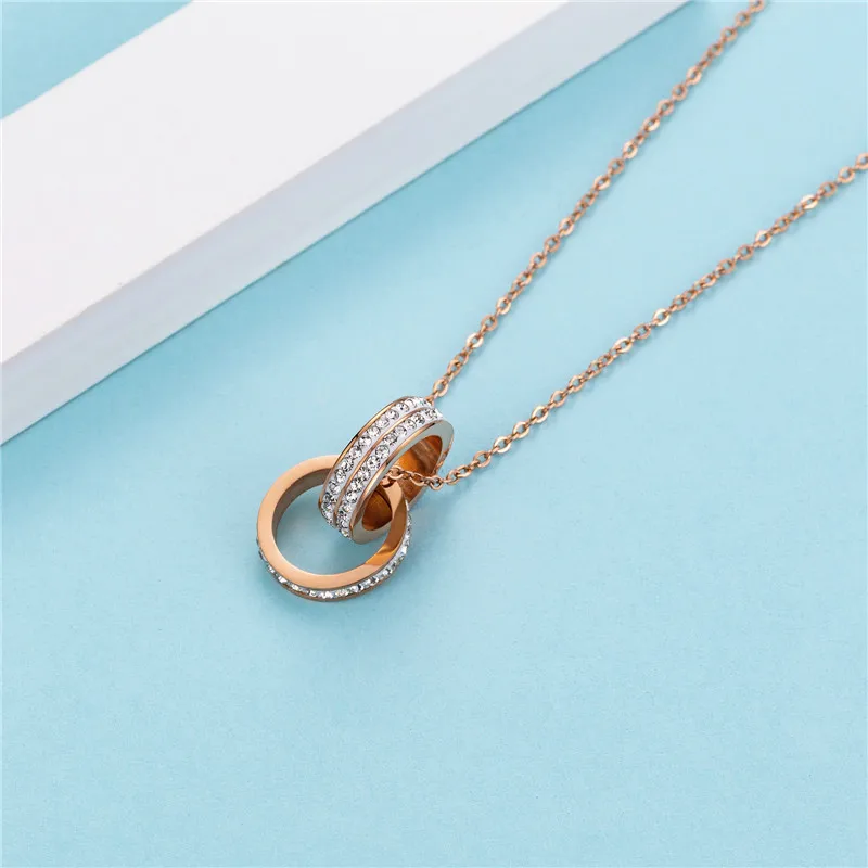 Название продукта: двойное кольцо, полностью бриллиантовое ожерельеМатериал изделия: нержавеющая сталь/ЦирконРазмер изделия: 45 + 5 смЦвет: розовое золото