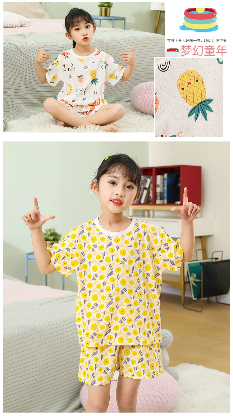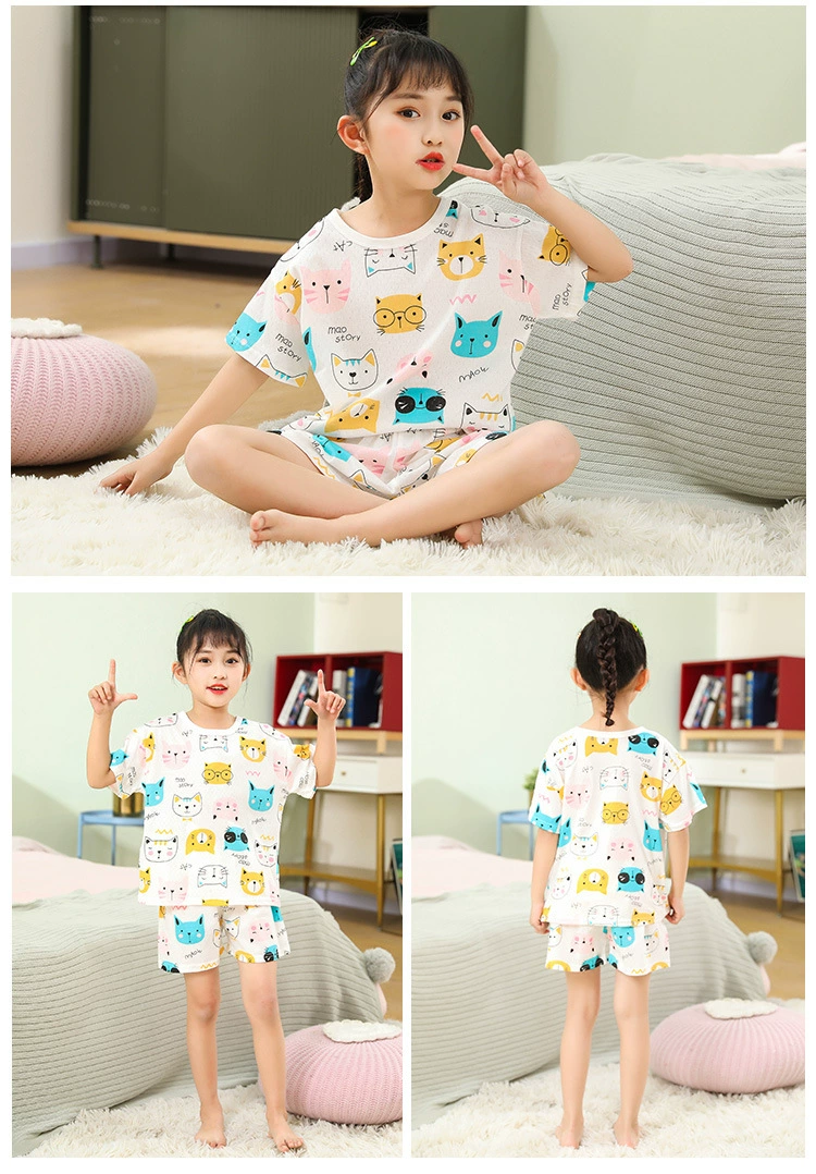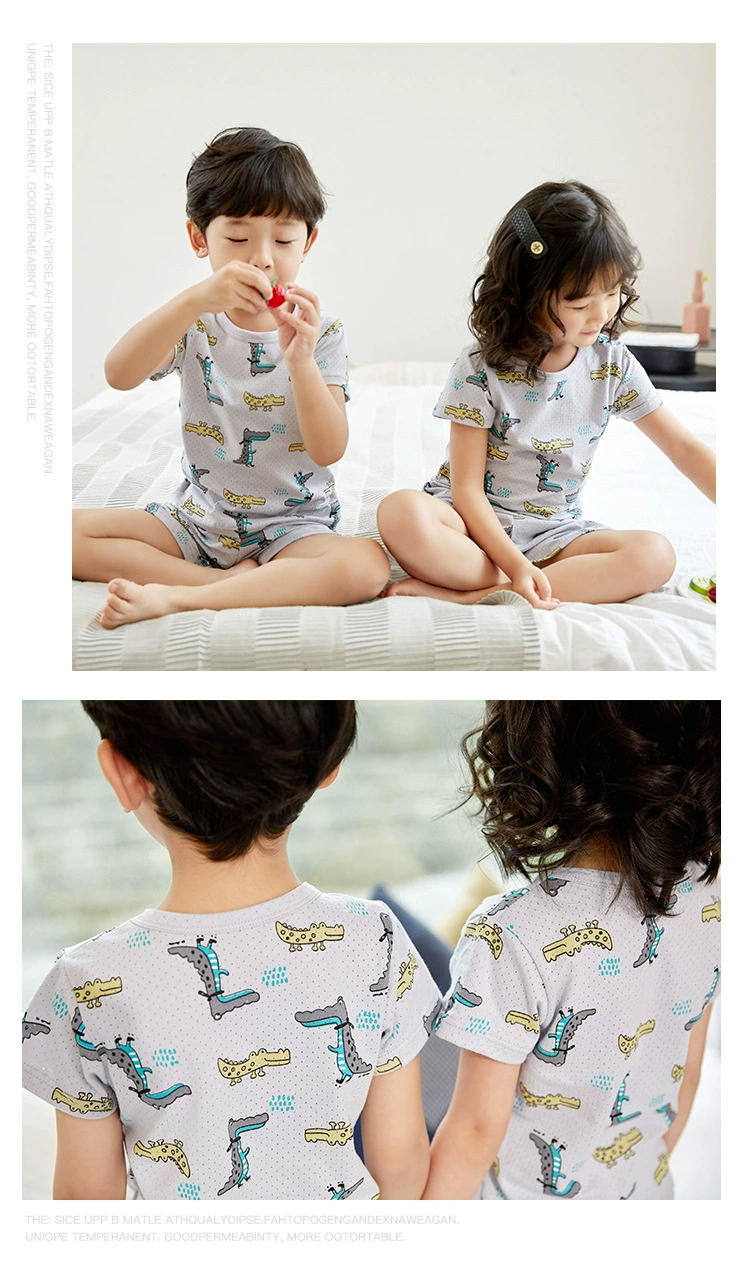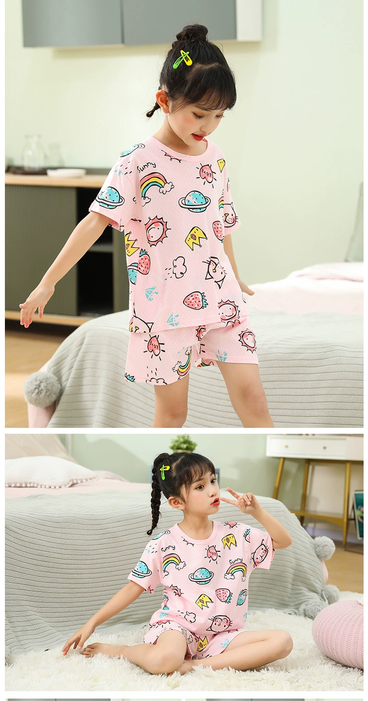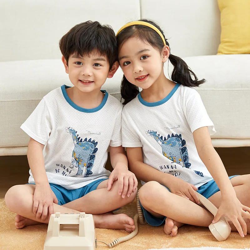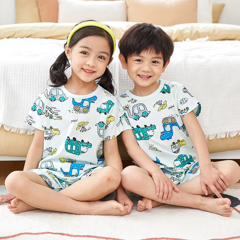 Пижама детская хлопковая с коротким рукавом, для мальчиков и девочек