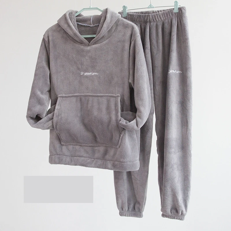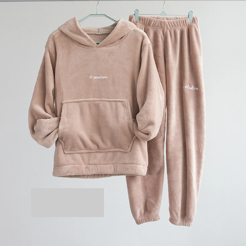 Женские зимние теплые пижамные комплекты, мягкий плюшевый однотонны...