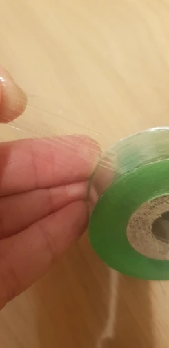 Пленка растягивается, первоначальную форму не восстанавливает, клеящего слоя нет, очень тонкая, легко рвется, вызывает сомнение использование в качестве прививочной ленты.