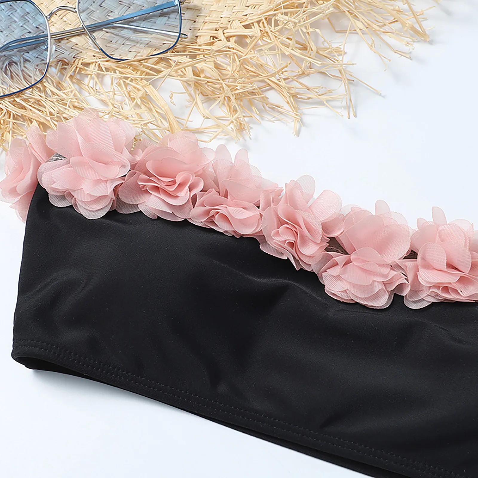 Романтический розовый купальник с лепестками, женский сексуальный комплект бикини с высокой грудью и контрастным градиентом, Цельный купальник, бикини, топ, повседневный # L