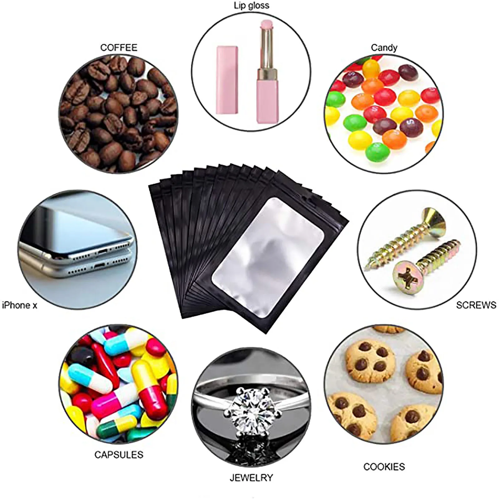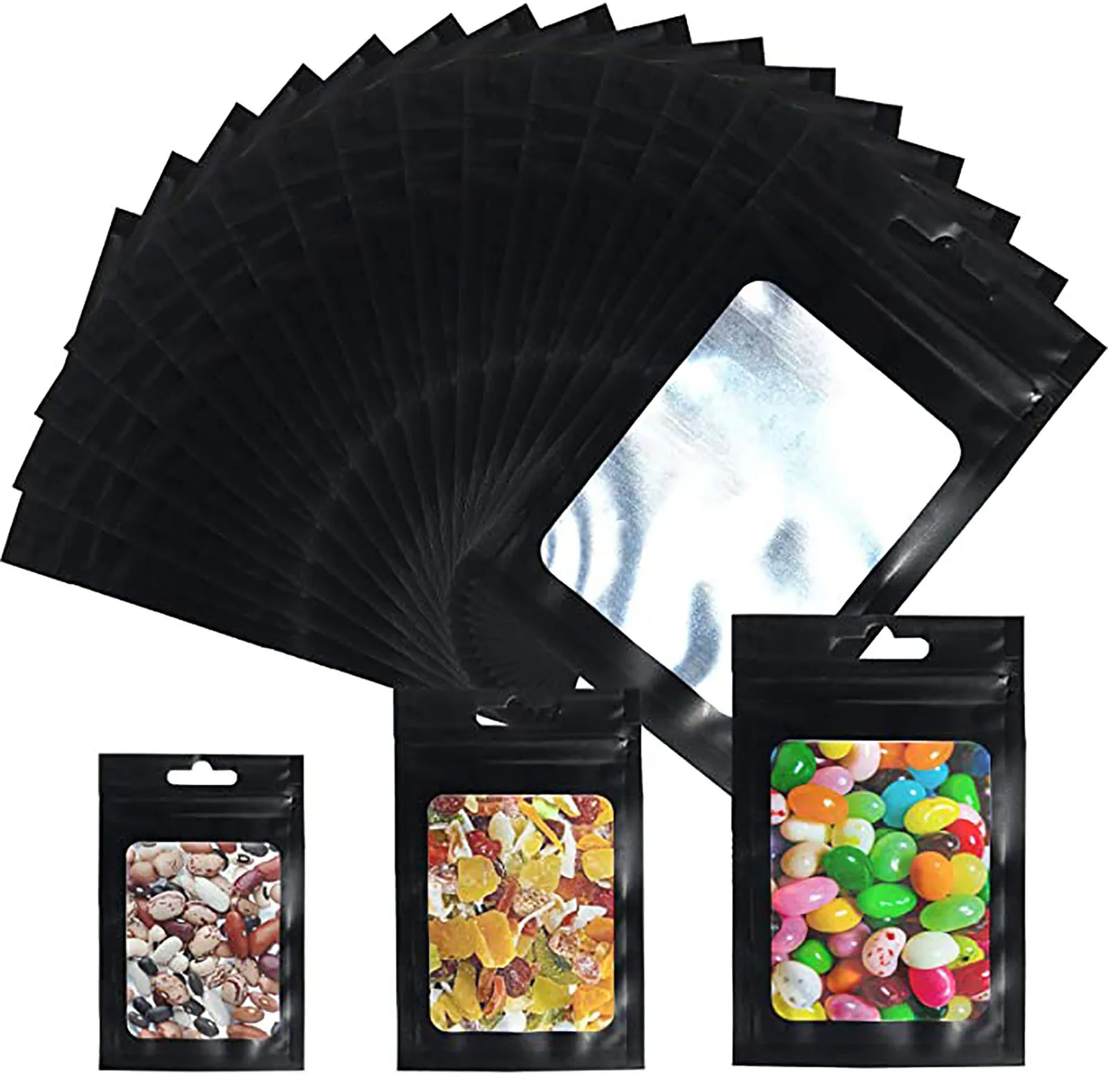 100 шт. матовый черный упаковочный пакет из алюминиевой фольги с замком-молнией, перезаряжаемый пакет с застежкой-молнией, небольшие пакеты из майлара, пакеты для образцов еды