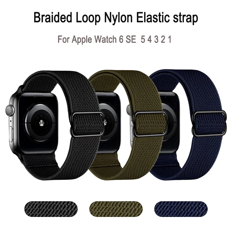 Эластичные нейлоновые сольные повязки для Apple Watch 654321 Se, регулируемые тянущиеся плетеные спортивные резинки для Iwatch Series