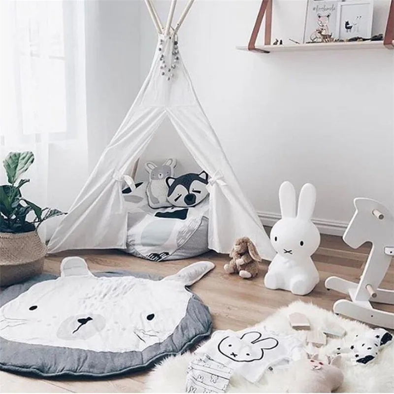 Детский игровой коврик, мягкое Хлопковое одеяло для ползания для детей, милый круглый ковер с животными, напольный ковер, нордический декор для детской комнаты