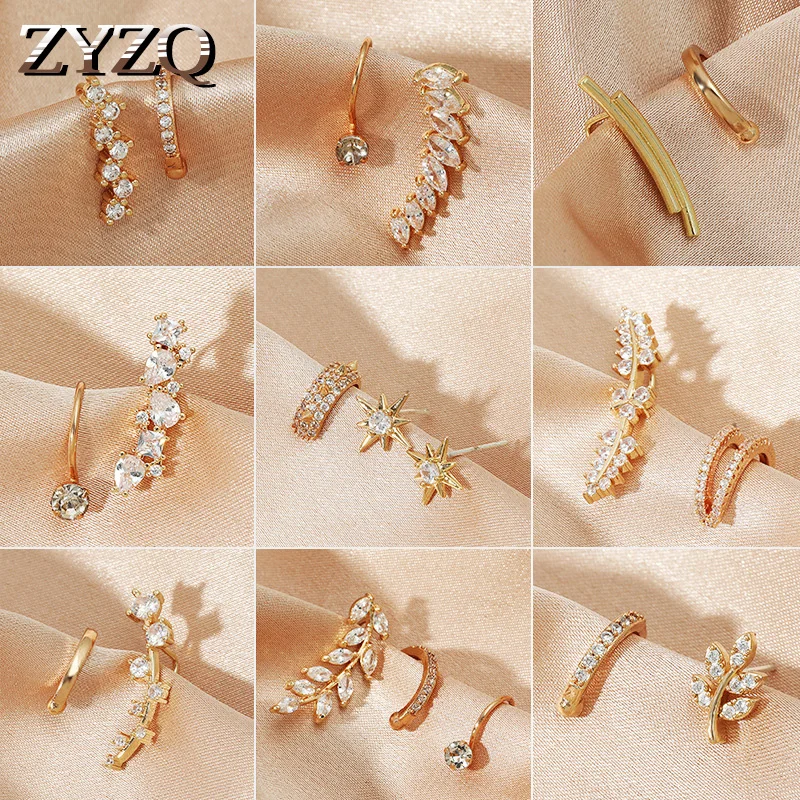 ZYZQ винтажные хрустальные цветы геометрические клипсы золотого цвета запонки со звездой серьги для женщин не пирсинг клипсы для женщин ювелирные изделия