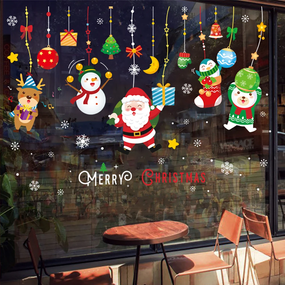 2021 рождественские украшения для окна на новый год Санта-Клаус домашний Декор ПВХ Виниловые наклейки на стену модное украшение для дома