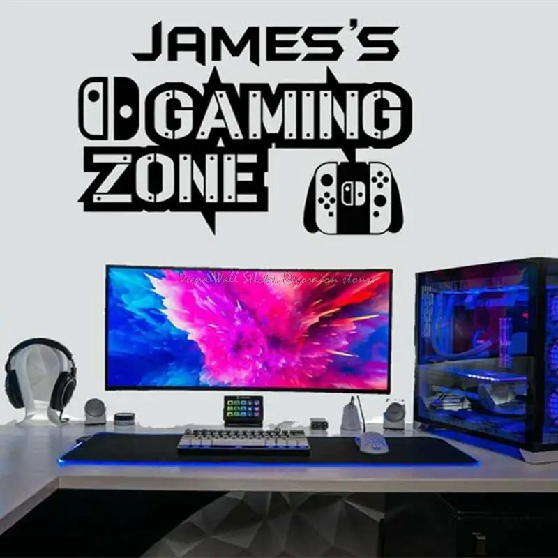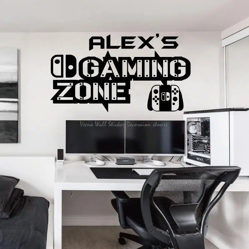 Виниловые наклейки на стену с названием игровой зоны под заказ, декоративные наклейки для дверей комнаты для любителей игр с интерьером, 24