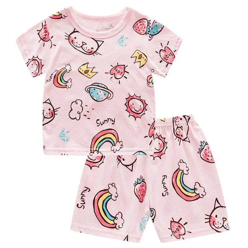 Летняя Хлопковая пижама с короткими рукавами для маленьких девочек, детская одежда с рисунком, детские пижамы, одежда для сна для маленьких мальчиков