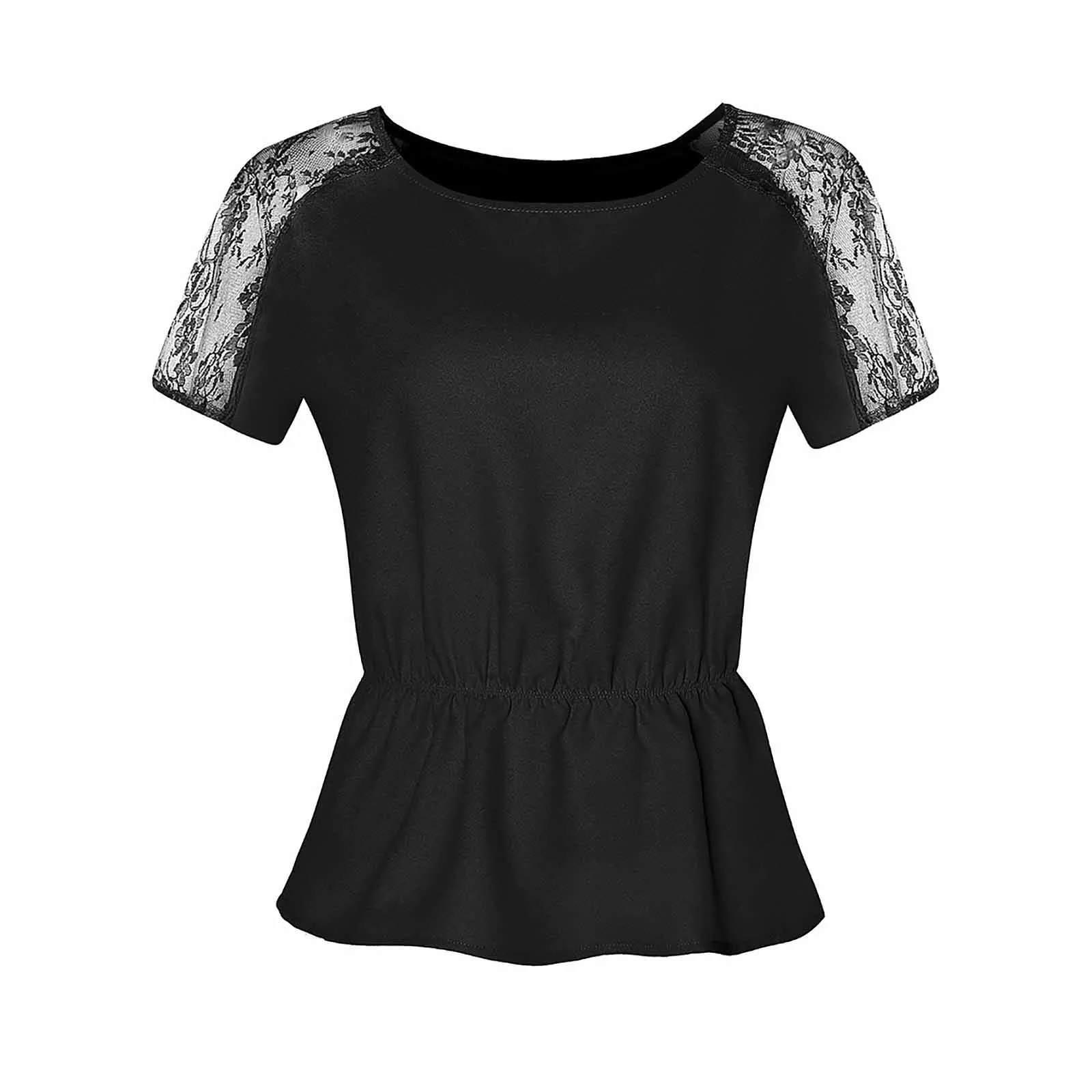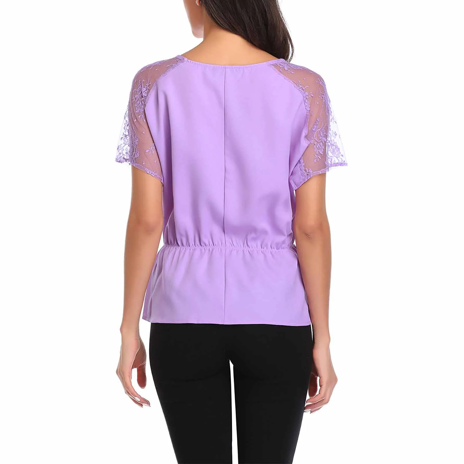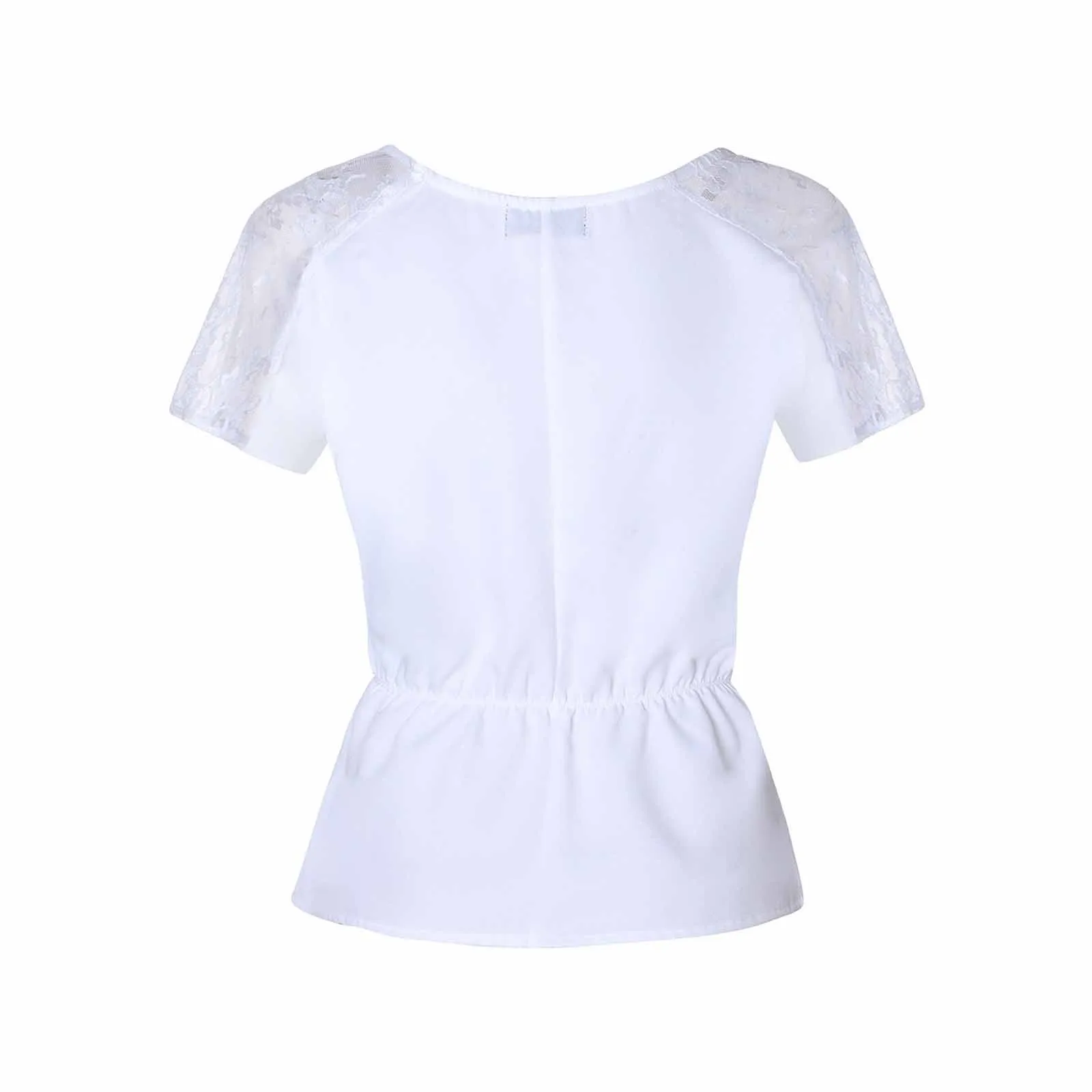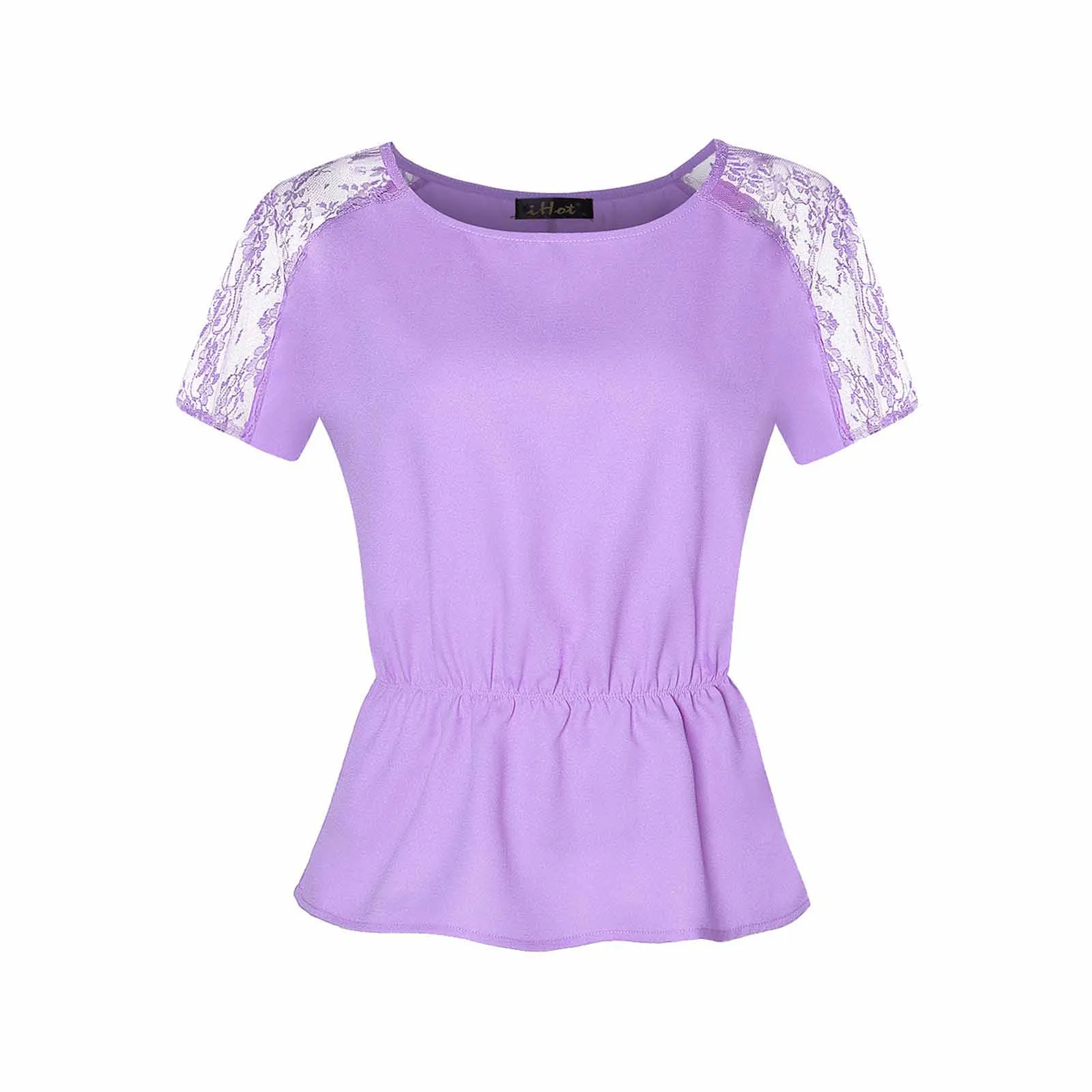 Женская модная повседневная универсальная Кружевная футболка с коротким рукавом и 0-образным вырезом