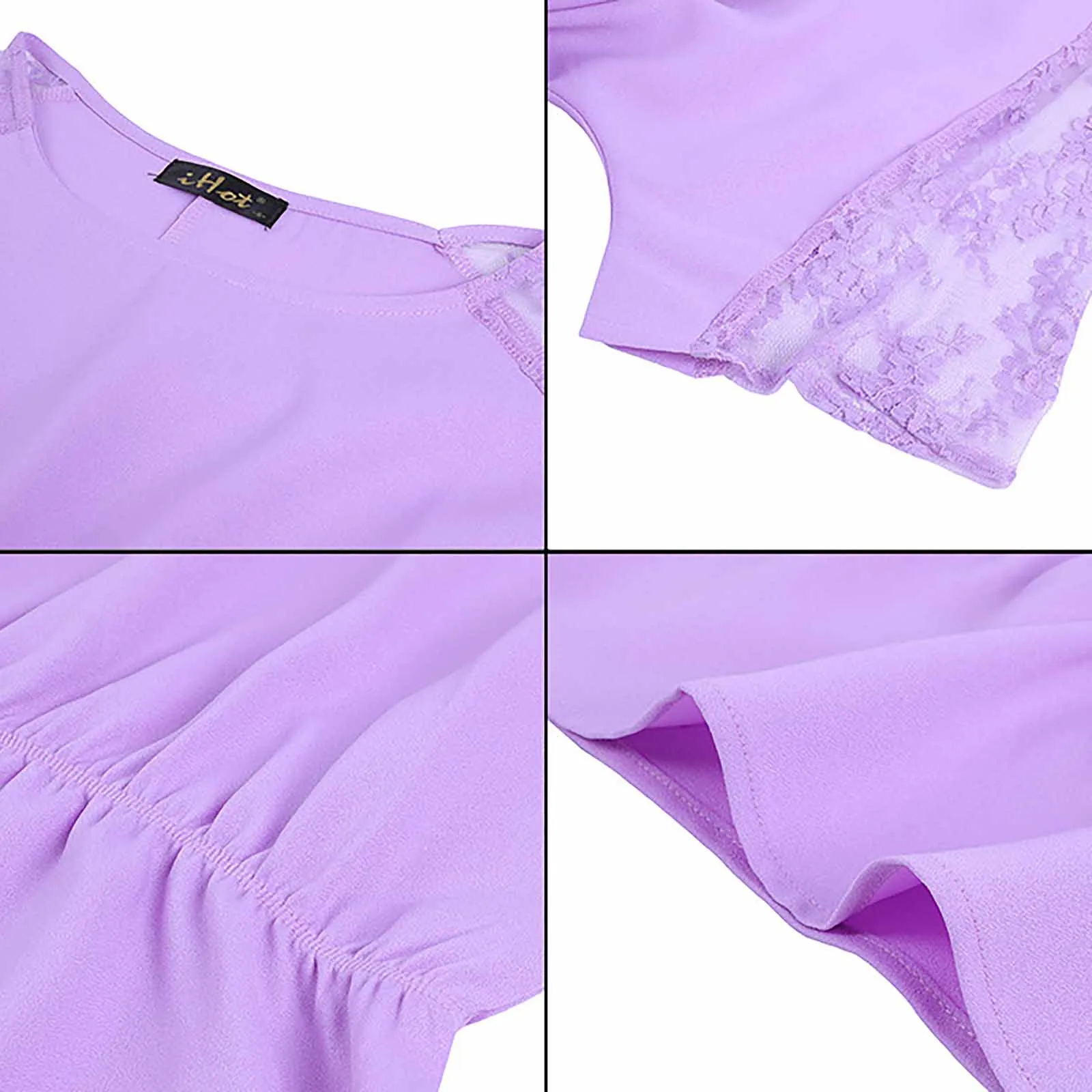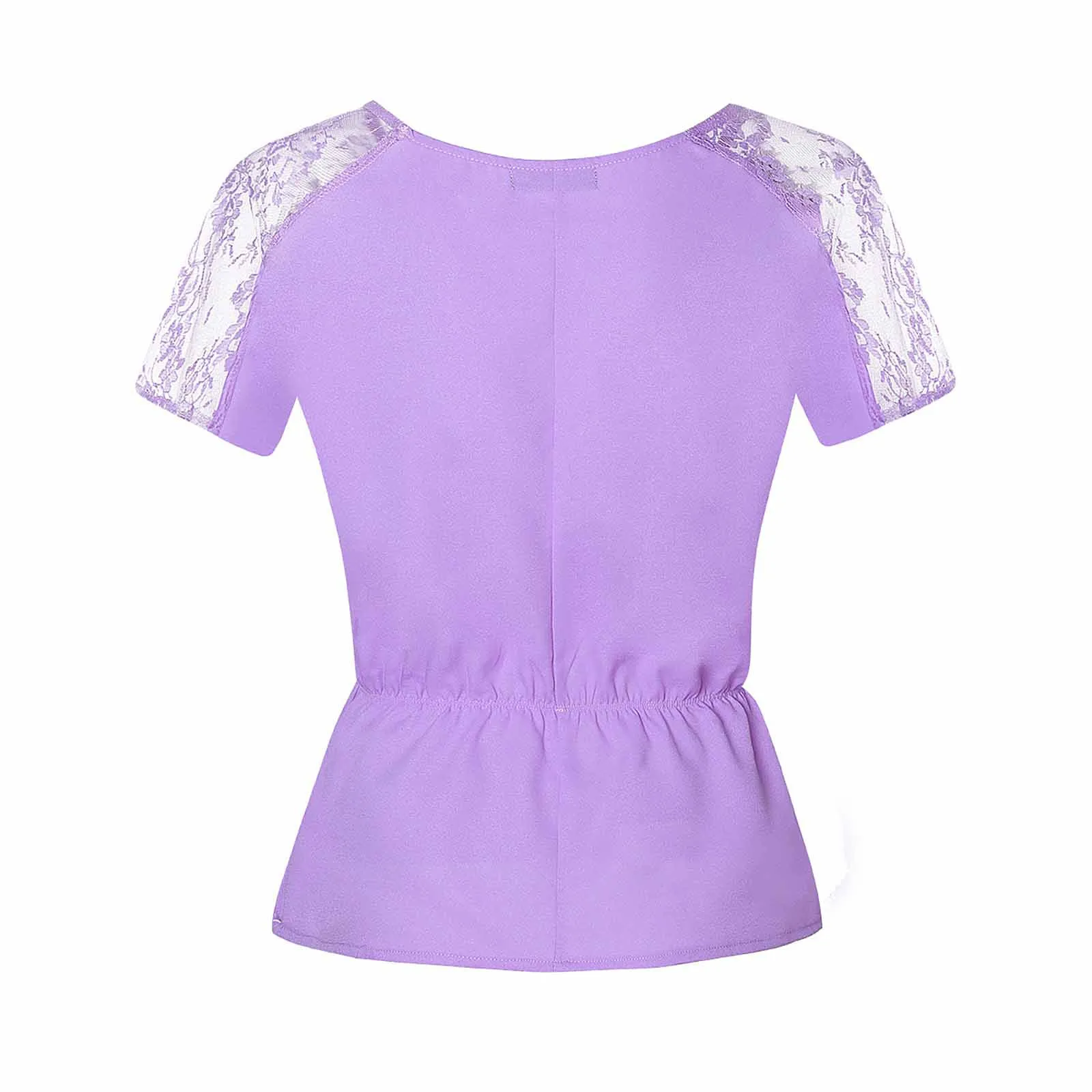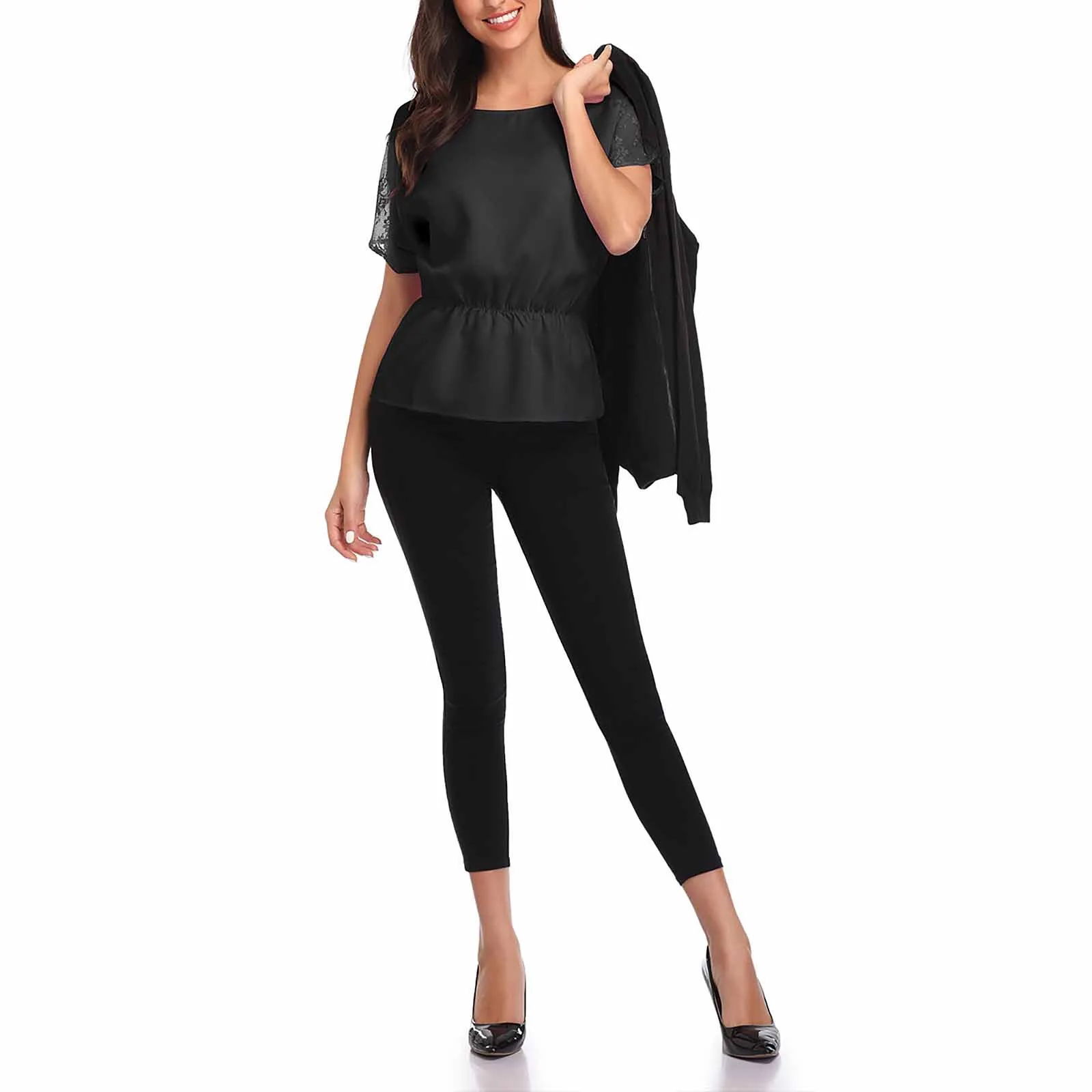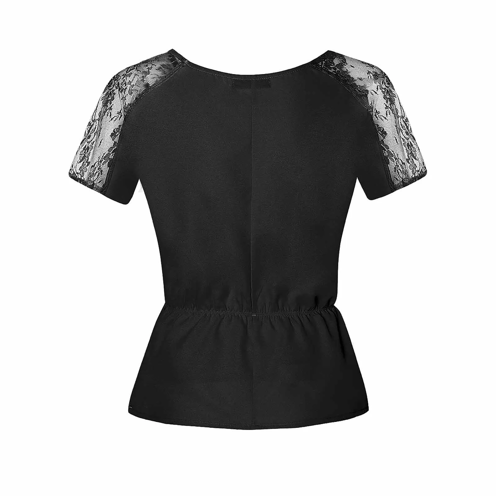 Женская модная повседневная универсальная Кружевная футболка с коротким рукавом и 0-образным вырезом