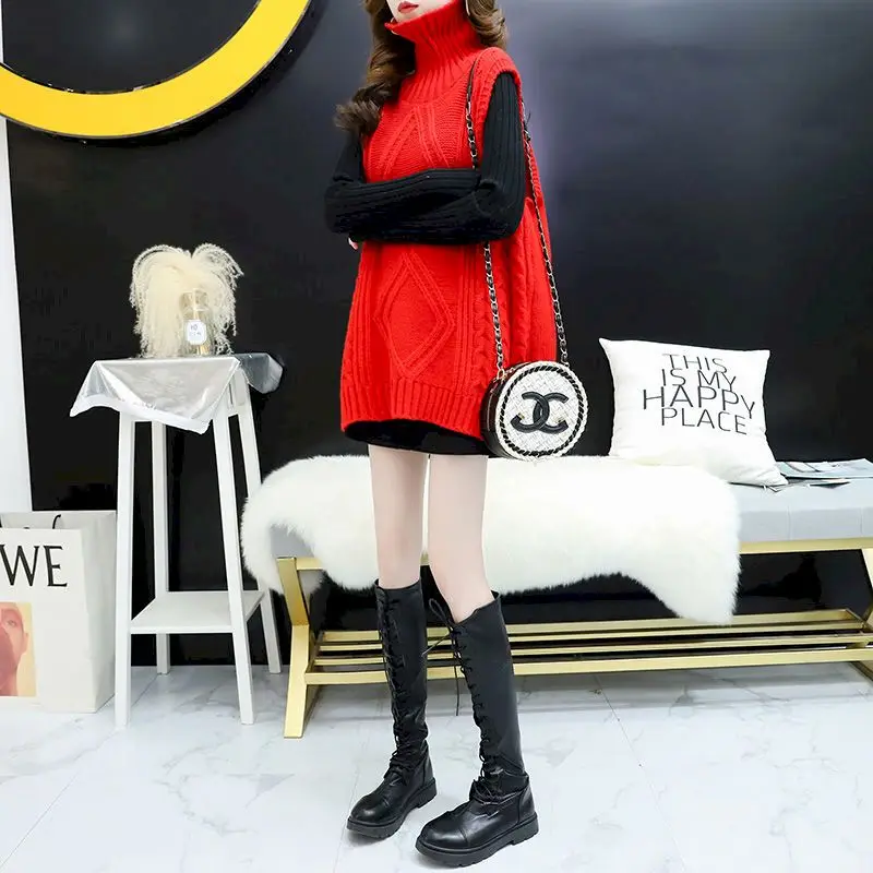 Свитер для женщин жилет вязаный Топ 2021 красный с высоким, плотно облегающим шею воротником; Нижнее белье; Сезон: Осень-зима; Женский зимний жилет женские майки