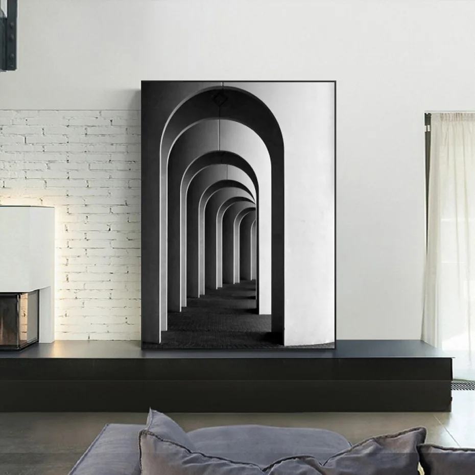 Скандинавский минимализм, черно-белый, европейская архитектура, холст, живопись, Постер, настенное искусство, вход, коридор, украшение для дома