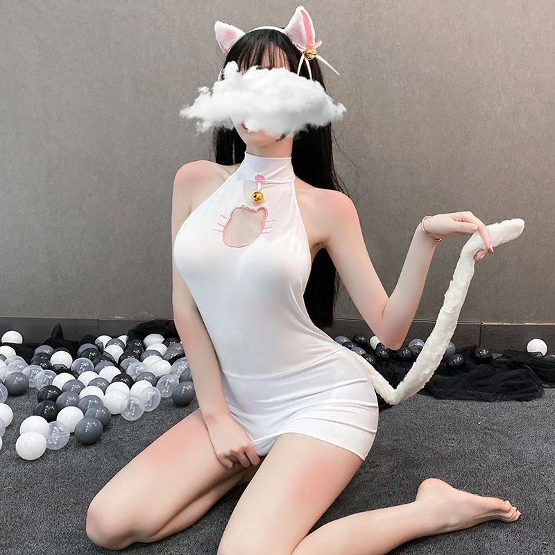 Соблазнительное Эротическое нижнее белье MEOW с вырезами и языком, косплей девушки-кошки, сексуальное Эротическое белье с открытой спиной, костюм горничной