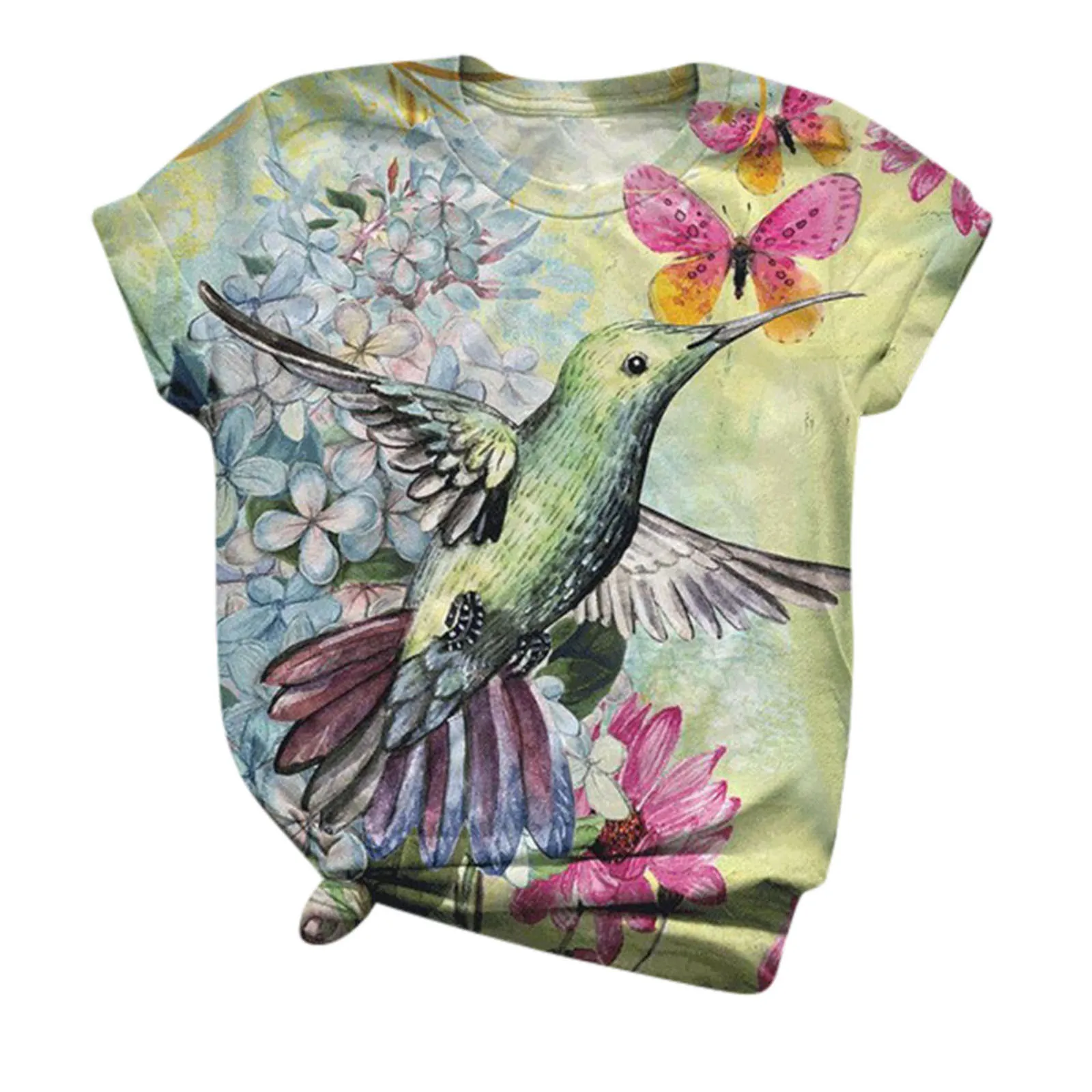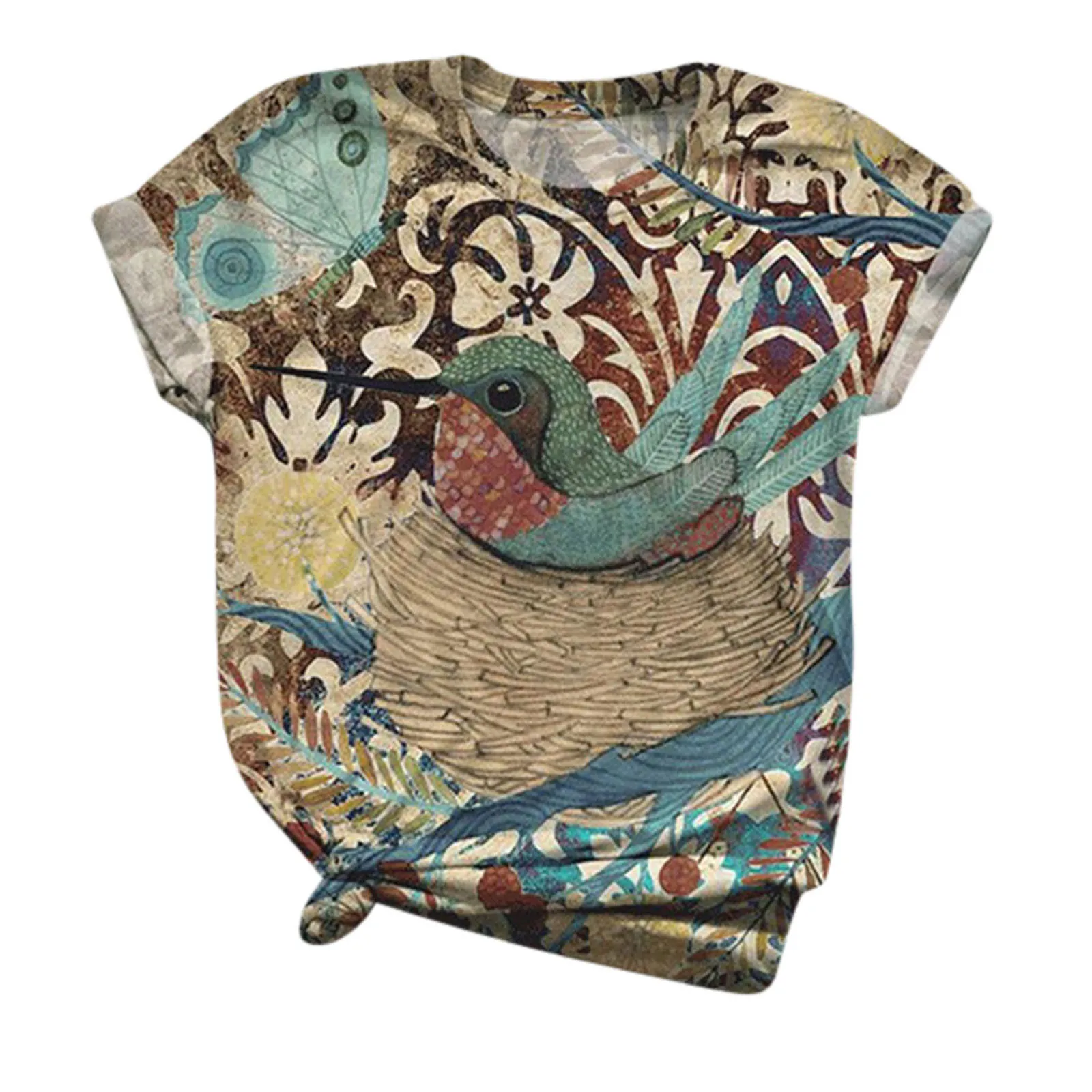 Размера плюс птицы печати женские футболки с О-образным вырезом Фут...