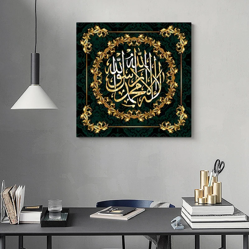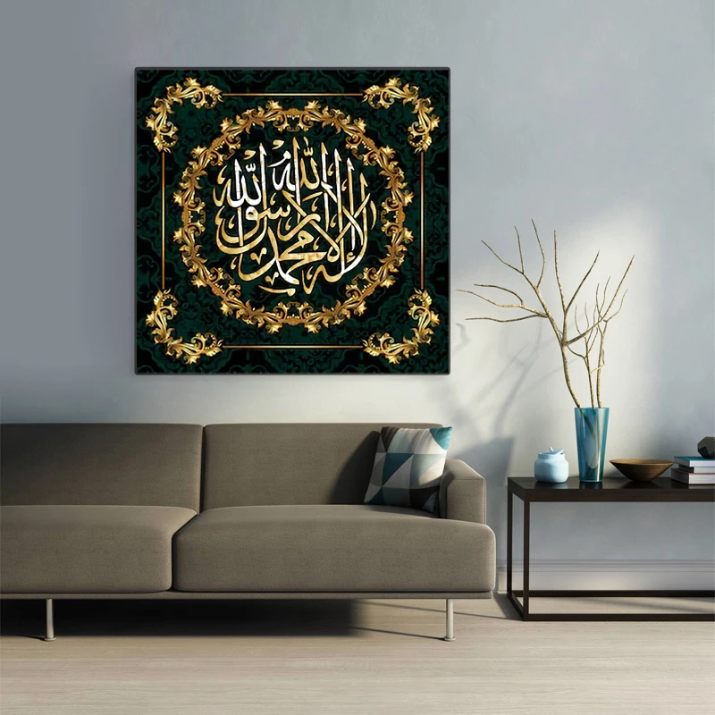 Золотая настенная Картина на холсте для мечети Рамадан, Декор для дома, Аллах мусульманство ислам, каллиграфические плакаты