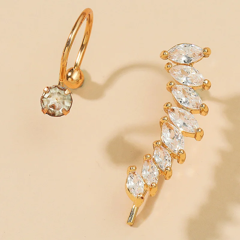 Серьги-каффы ZYZQ, с кристаллами, золотого цвета, клипса на ухо в виде листьев, для женщин, клипсы, не пирсинг, ювелирные изделия для ушей, 2021