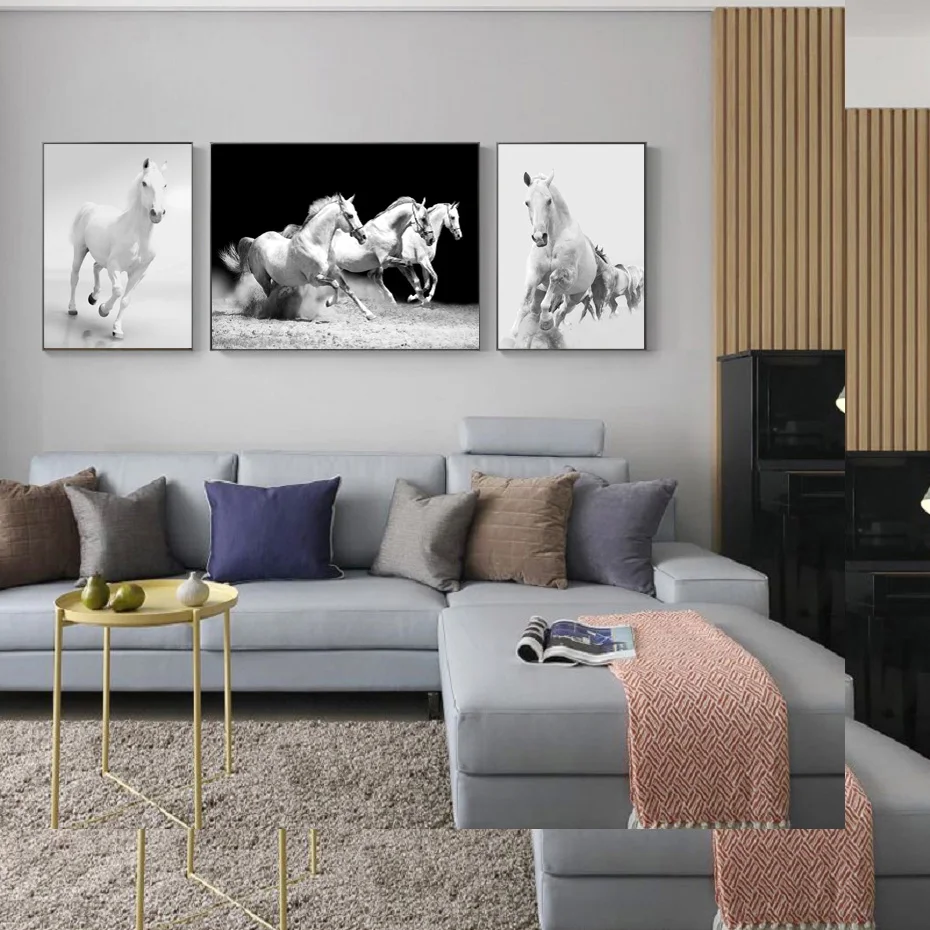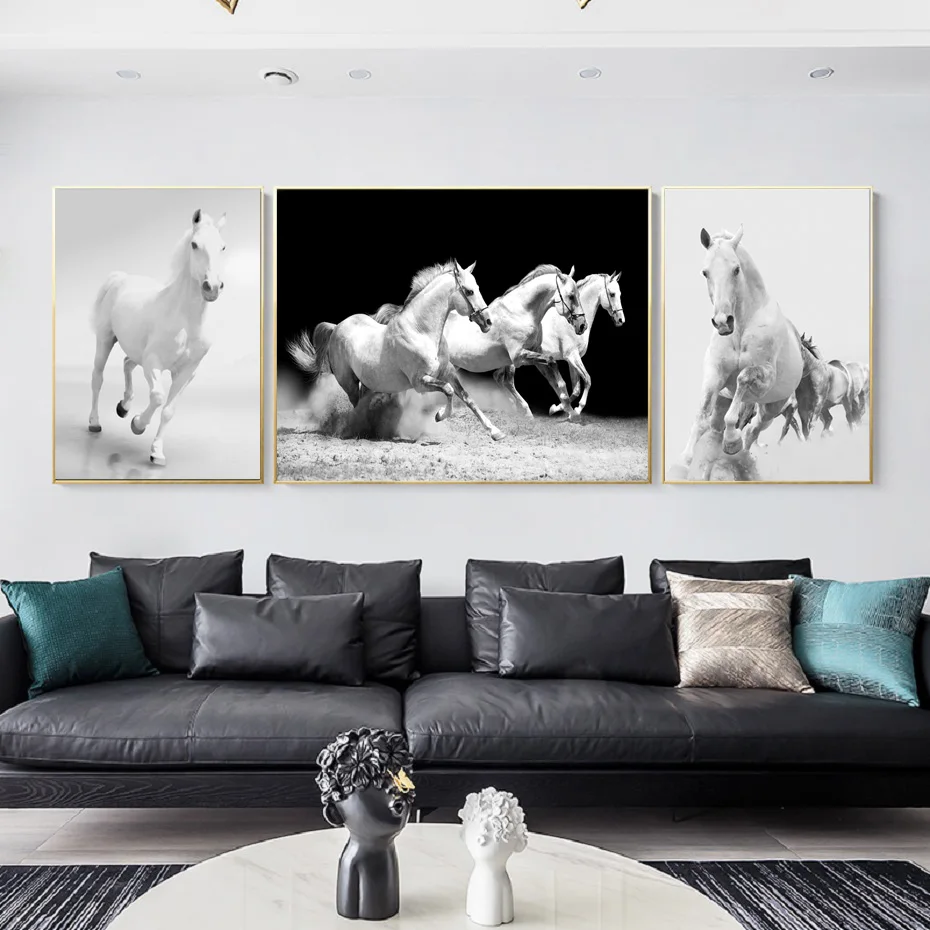 Скандинавском атмосфера Черный и белый серый живопись на холсте с изображением лошади постер на стену для домашнего декора анималистический настенный художественный Гостиная Спальня Главная Wall Art украшение дома