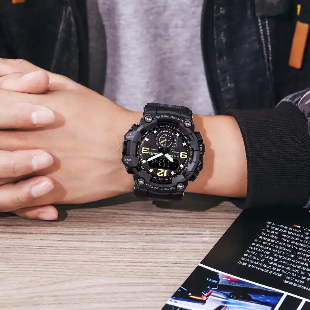 SKMEI Лидирующий бренд, роскошные часы для мужчин, спортивные часы, светодиодный цифровой военный секундомер, календарь, 50 м, водонепроницаемые наручные часы