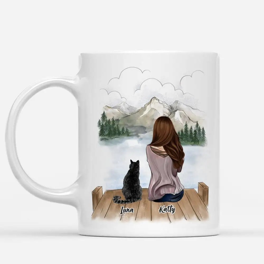 Девушка и кошка, мужчина, пара и питомец, персонализированная кружк...