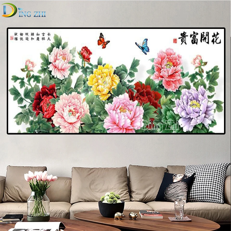 Большой размер цветок алмаз Искусство Живопись Пион цветок Алмазная мозаика Китайский стиль вышивка квадратная/круглая Дрель Стразы Декор