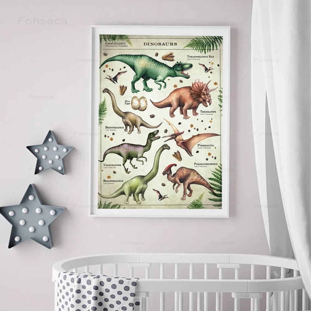 Детский мультфильм плакат с динозавром холст картины милую непосред...