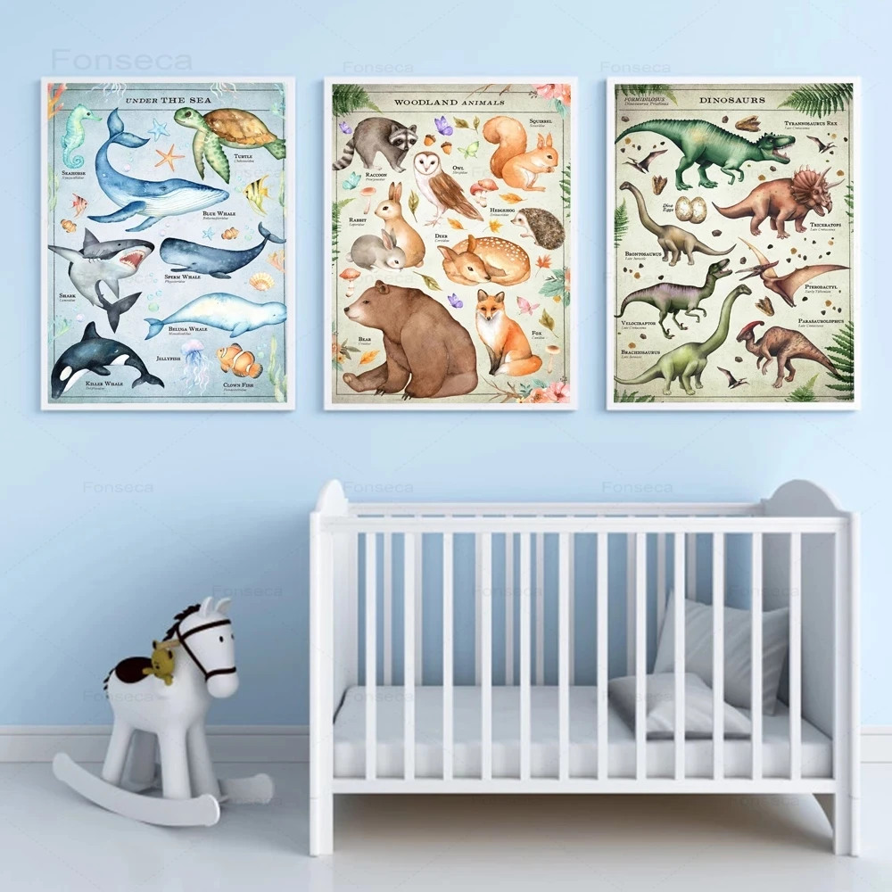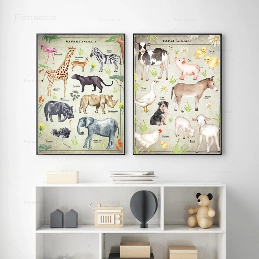 Винтажная сафари животные холст живопись динозавр художественные принты скандинавские плакаты и принты настенные картины украшение для детской комнаты