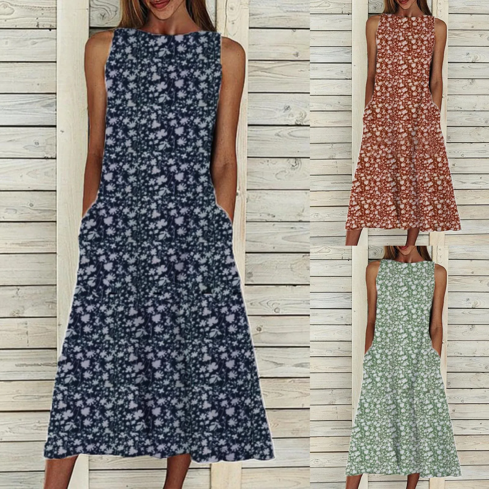 Женское платье с градиентом 40 #, винтажное летнее пляжное платье с карманами и круглым вырезом, Свободные повседневные платья