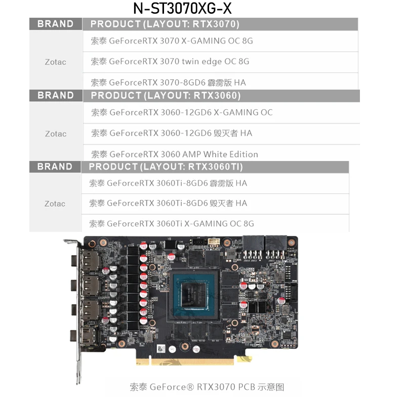 Видеокарта Bykski для ZOTAC Geforce RTX 3070 X GAMING OC 8GTwin EdgeZOTAC 30603060ti