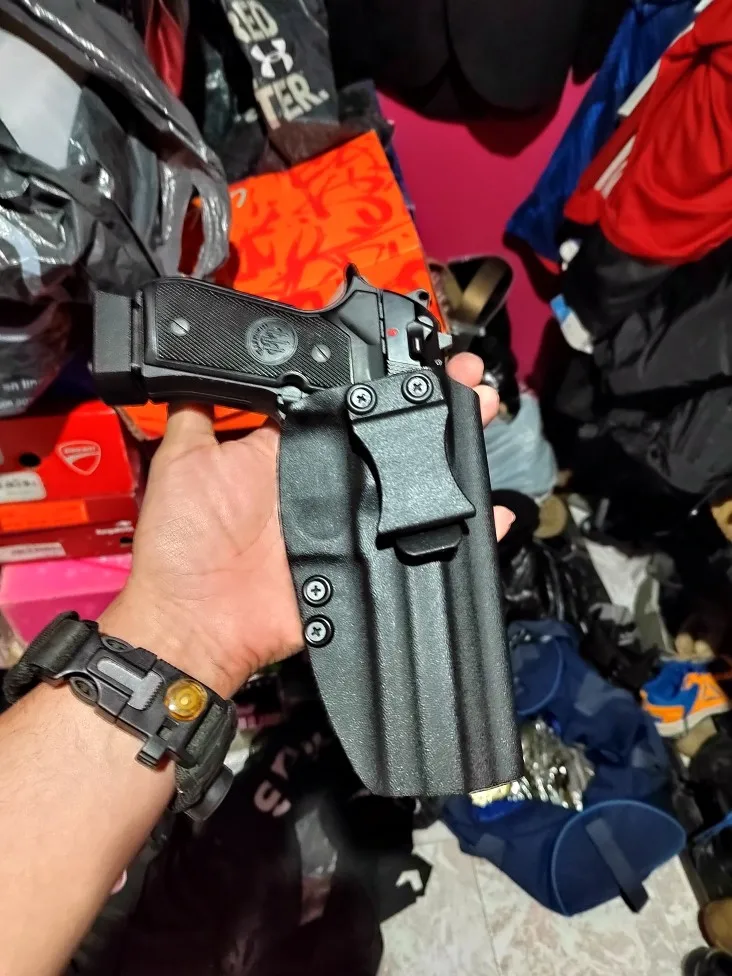 Изделие идеально подходит к смарт-Беретта 92fs, kydex качество, металлический зажим для ремня с накатанной головкой регулируемой в наклоне, отличное соотношение цены и качества.