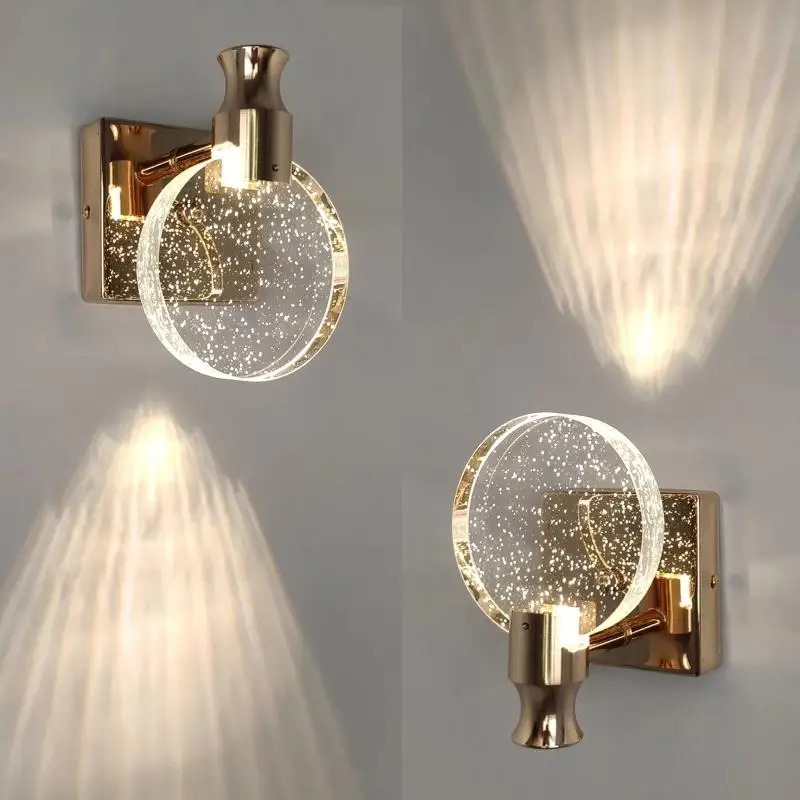 Современный хрустальный настенный светильник Золотая спальня светодиодные Настенные светильники прикроватный бра для лестницы ванная комната гостиная круглые зеркальные светильники abajur