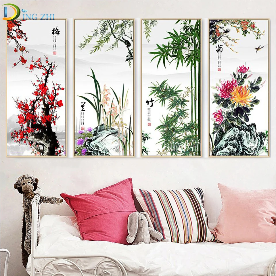 Простая слива, Орхидея, бамбук, хризантема, алмазная живопись, цветок в китайском стиле, полная квадратная/круглая Алмазная вышивка, настенное искусство