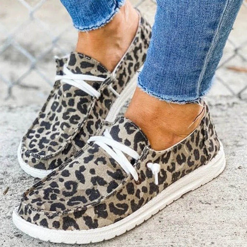 Женские холщовые кроссовки на шнуровке, с леопардовым принтом, Разм...