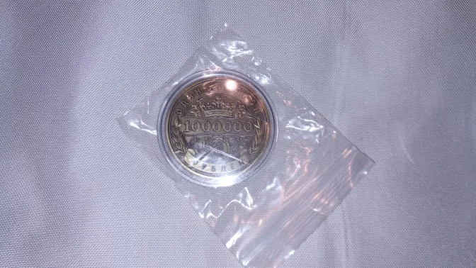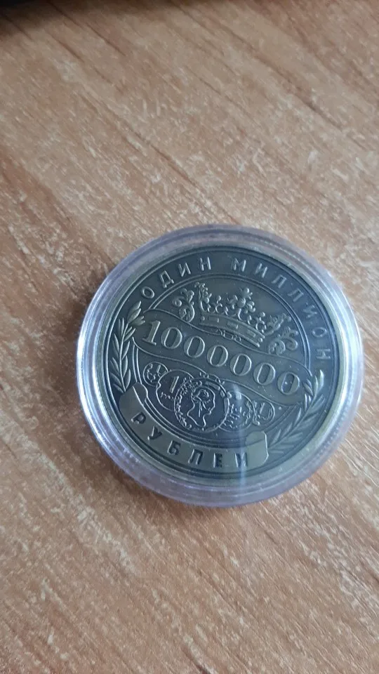 Это реплика памятной монеты 1 миллион рублей в России с двойной рельефной поверхностью.