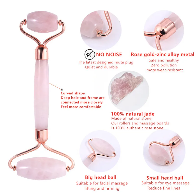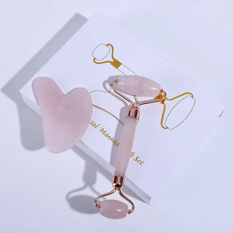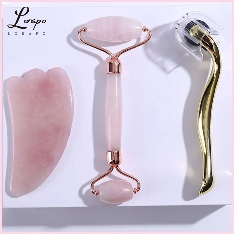 Роллер-массажер для лица из розового кварца, Нефритовый ролик с микроиглами, Нефритовый скребок, набор для ухода за кожей
