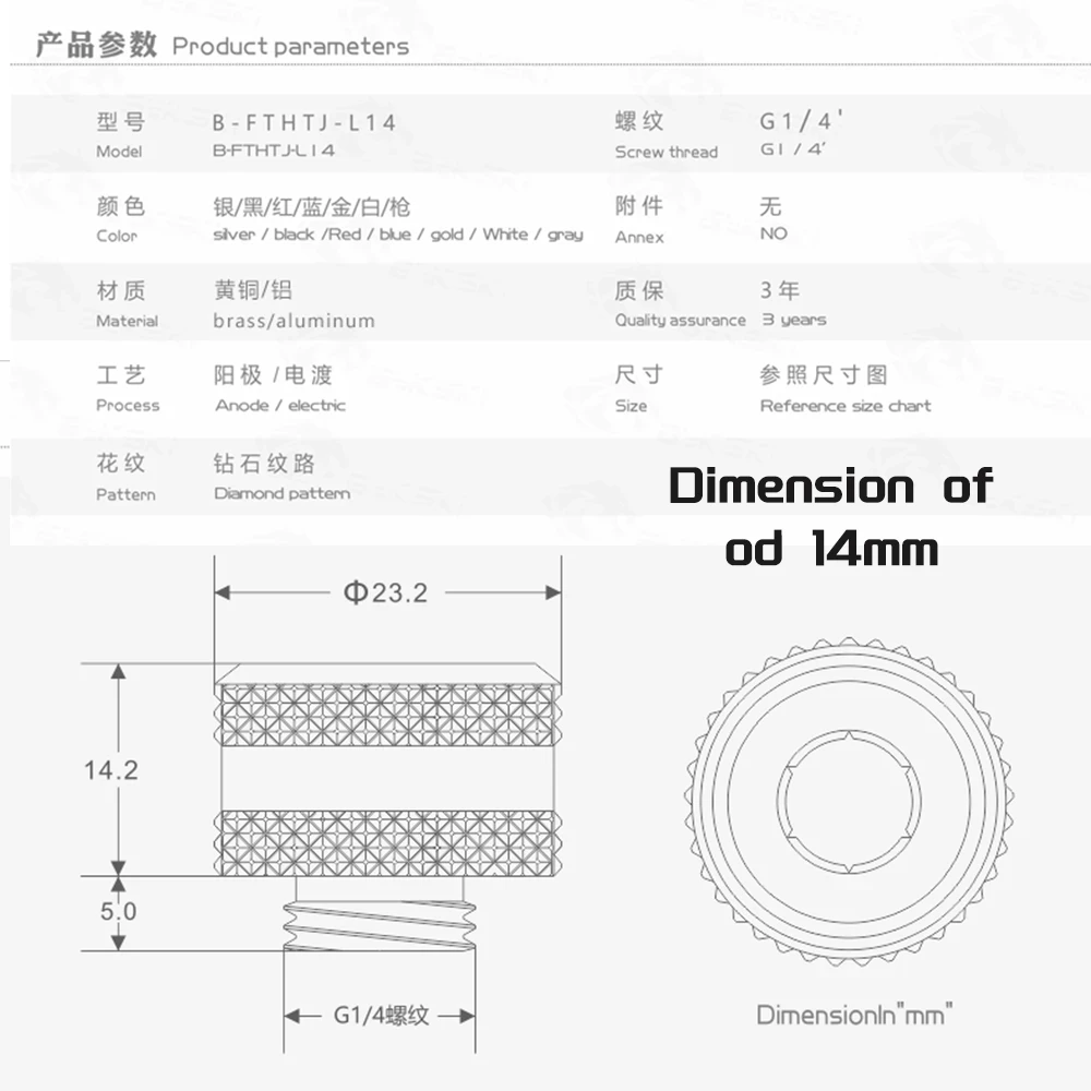 Барб и кольцо изготовлены из никелированной латуни с ЧПУ и качественными уплотнительными кольцами.Технические данные:-Резьба: G1/4"-Длина наружной резьбы 5 мм-Поддерживаемая трубка: 12 мм (OD) 14 мм (OD) 16 мм (OD)-Совместимые трубки: твердая акриловая/медная/латунная/трубка из нержавеющей стали