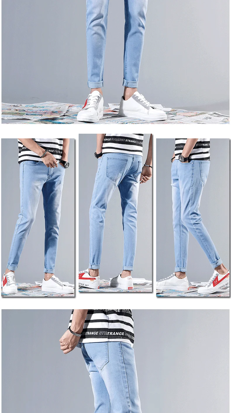 Мужские облегающие джинсы, черныебелыенебесно-голубые брюки из денима, повседневные зауженные брюки, 2021