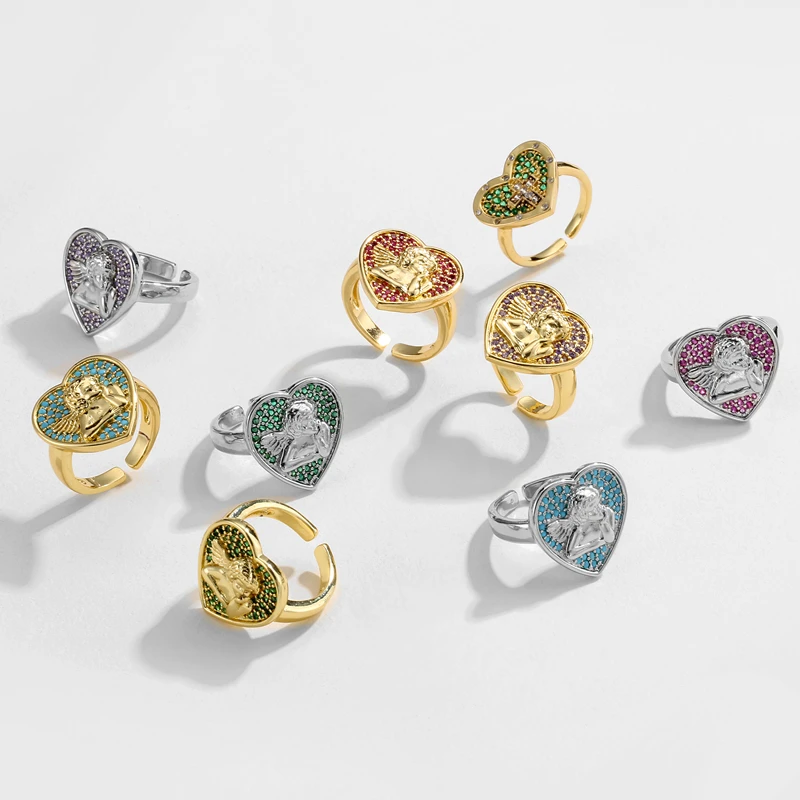 HECH3NG, красочное кольцо с кубическим сердечком, винтажное регулируемое кольцо с крестом Купидона, для женщин, ювелирные изделия, оптовая продажа