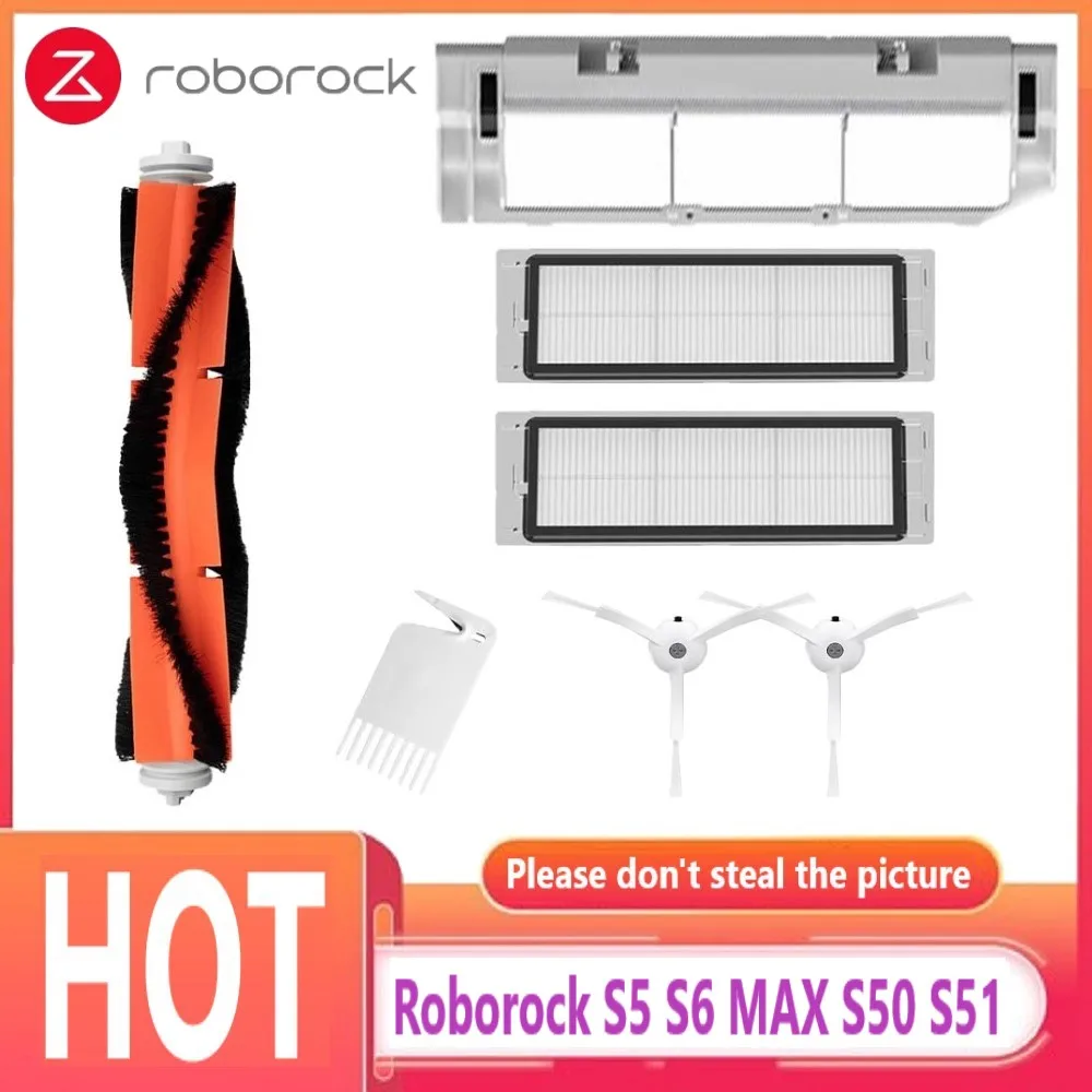 Запчасти Roborock S6, S5 MAX, S50, S51, 2 HEPA-фильтра, 1 основная щетка, 2 боковых щетки, 1 основная щетка, аксессуары
