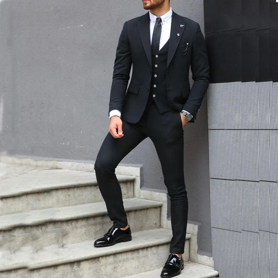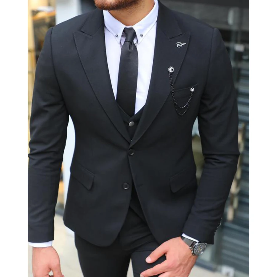 Mew прибытие 3 шт. черный мужской костюм с двумя пуговицами 2021 приталенная индивидуальная одежда для жениха свадебный деловой блейзер (пиджак + жилет + брюки)