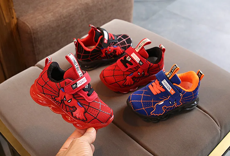 Детская обувь с подсветкой «Человек-паук» светильник мальчиков и девочек, светящиеся Детские кроссовки 2021, сетчатая Спортивная обувь со светодиодной подсветкой для мальчиков и девочек