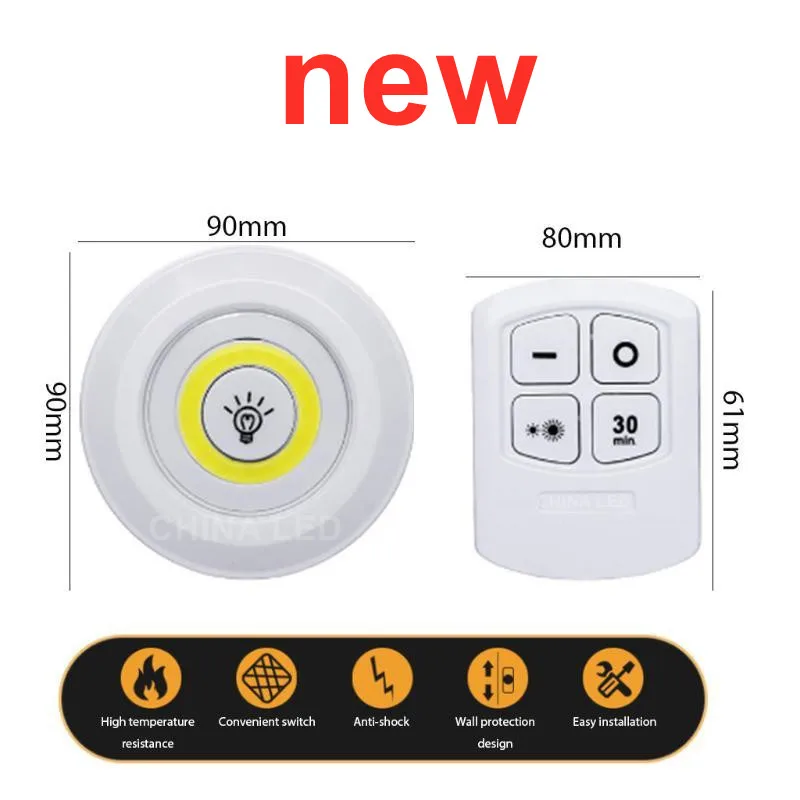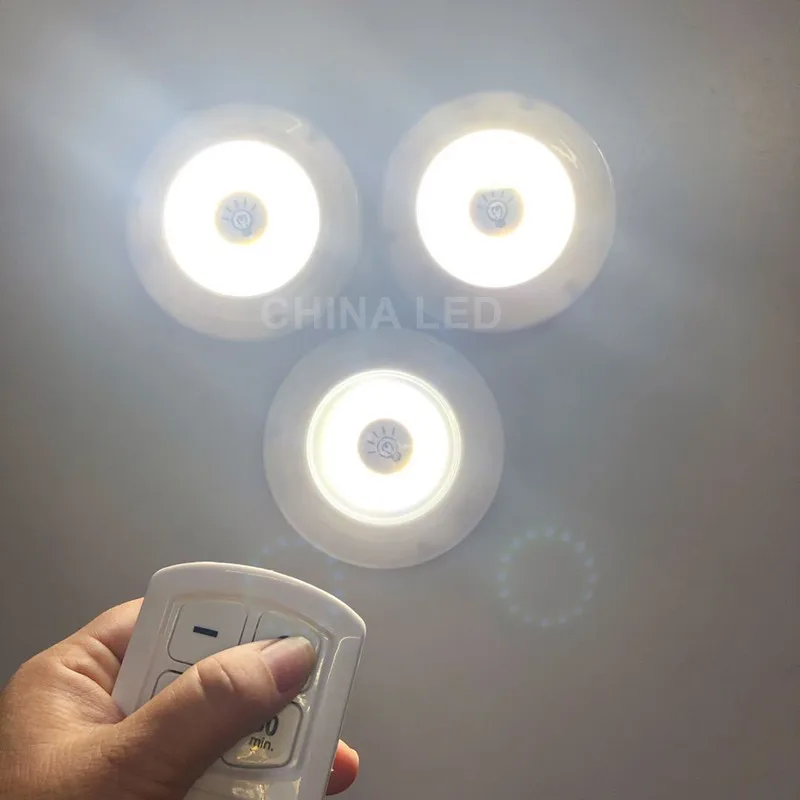 Новый светодиодный светсветильник льник для шкафа 3 Вт, регулируемый пульт дистанционного управления, кнопка лампы для витрины, для лестницы, кухни, шкаф для ванной комнаты, ночник