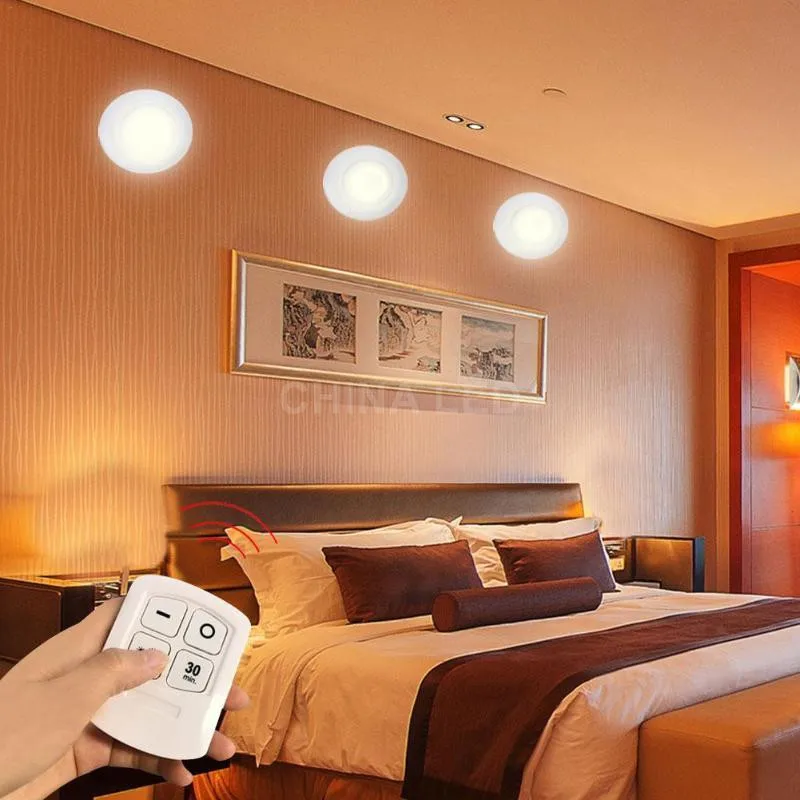Новый светодиодная подсветка под шкаф с регулируемой яркостью 3 Вт, светодиодные шкафы с дистанционным управлением на батарейках для шкаф для одежды ванная освещения