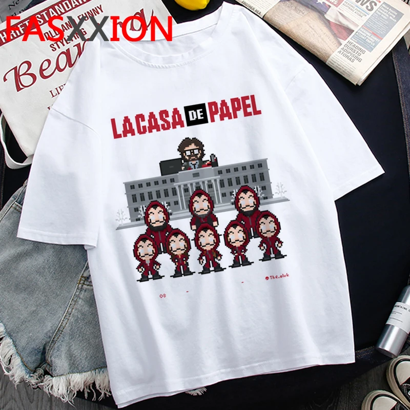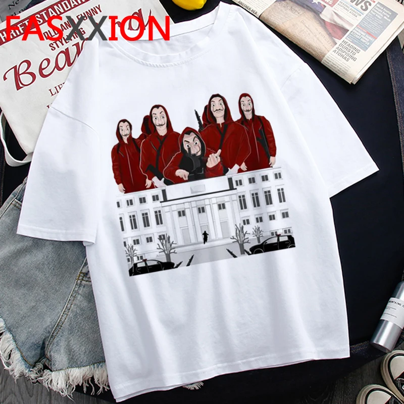 Уличная La Casa De Papel футболка для женщин деньги Heist House of Paper футболка Bella Ciao футболка с рисунком повседневные топы, футболки женские