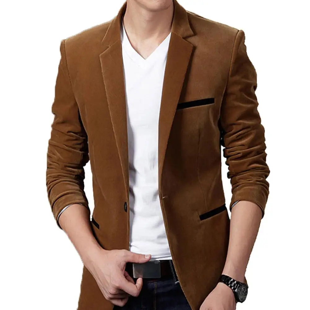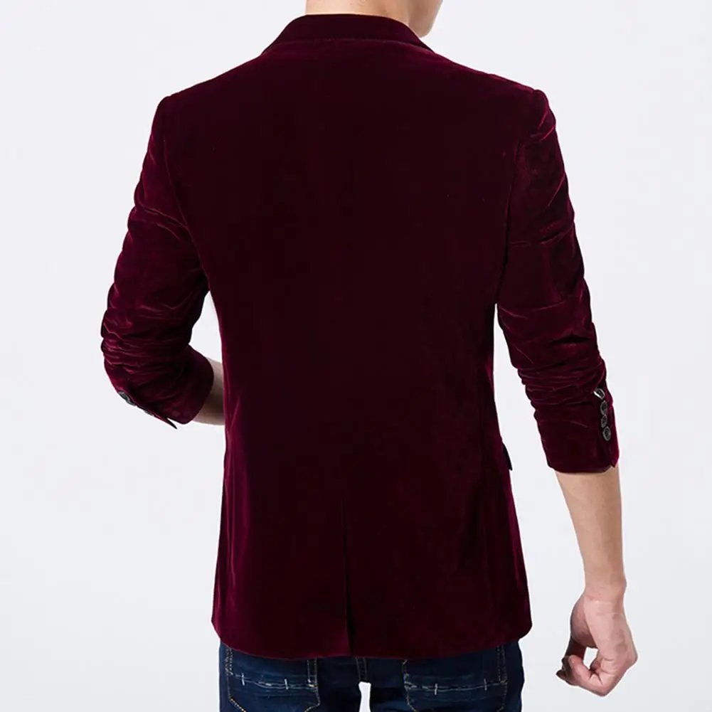 Мужской бархатный приталенный Блейзер, повседневный блейзер с длинным рукавом, отворотом, воротником на пуговицах и карманами, вечерние платья, корейский стиль, осень 2021
